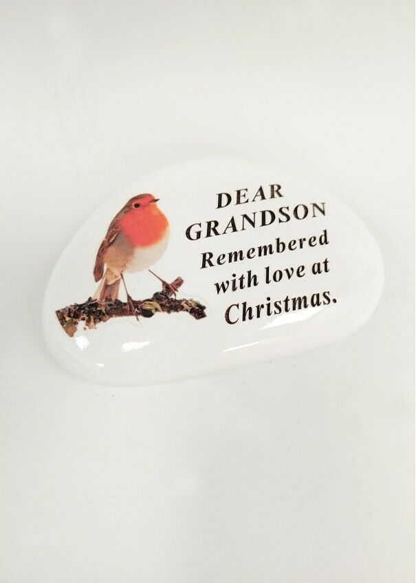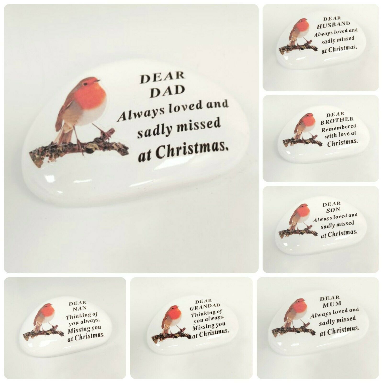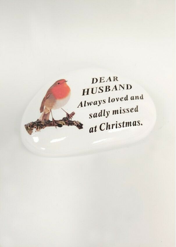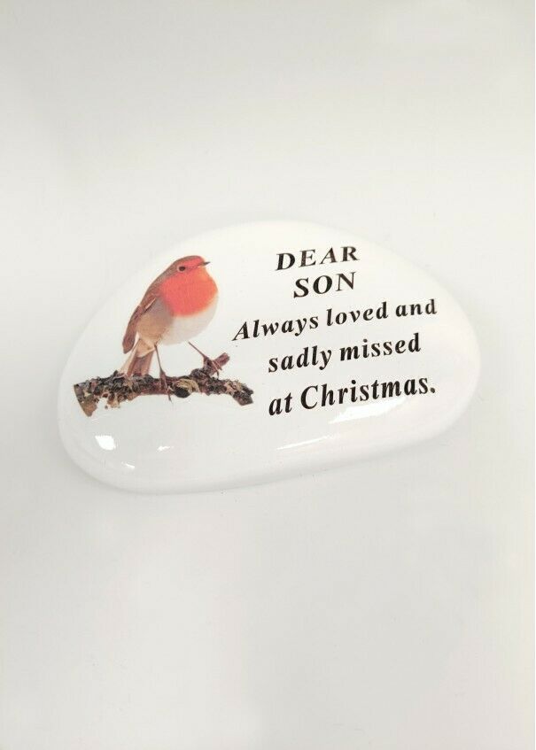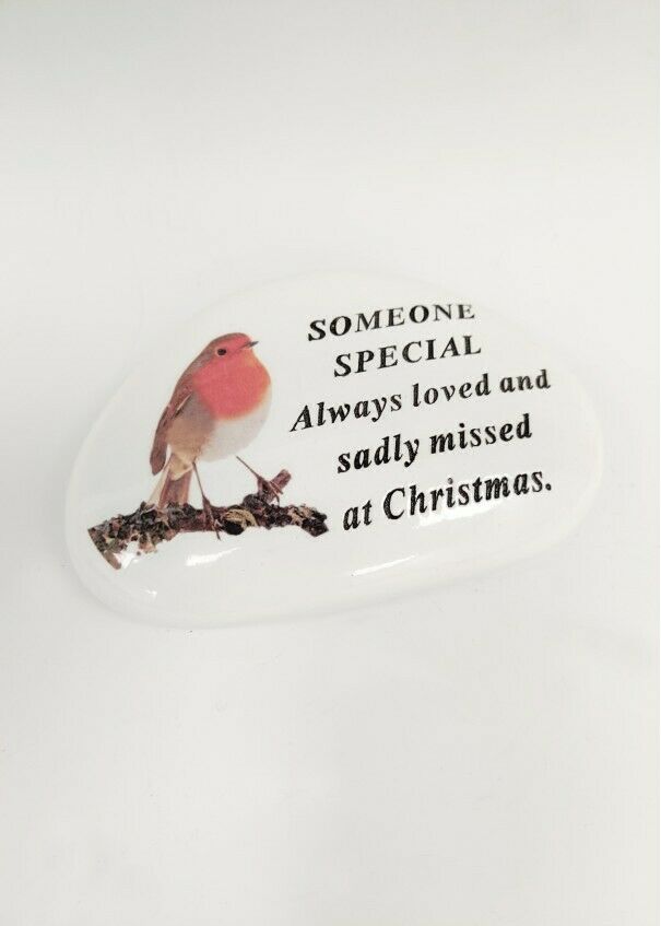 A beautiful white plaque with Robin detail and a message to a lost loved one.