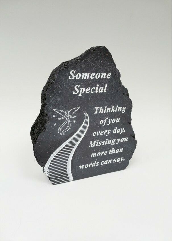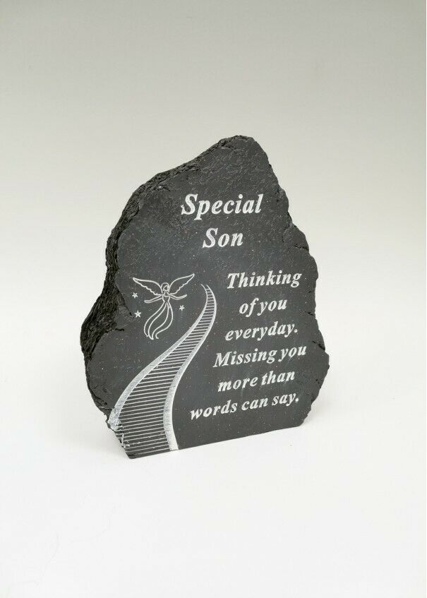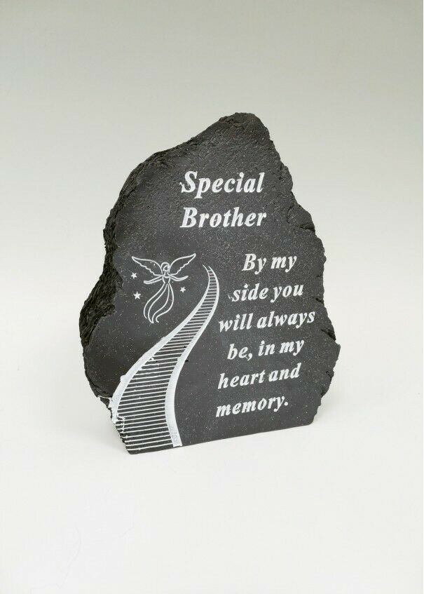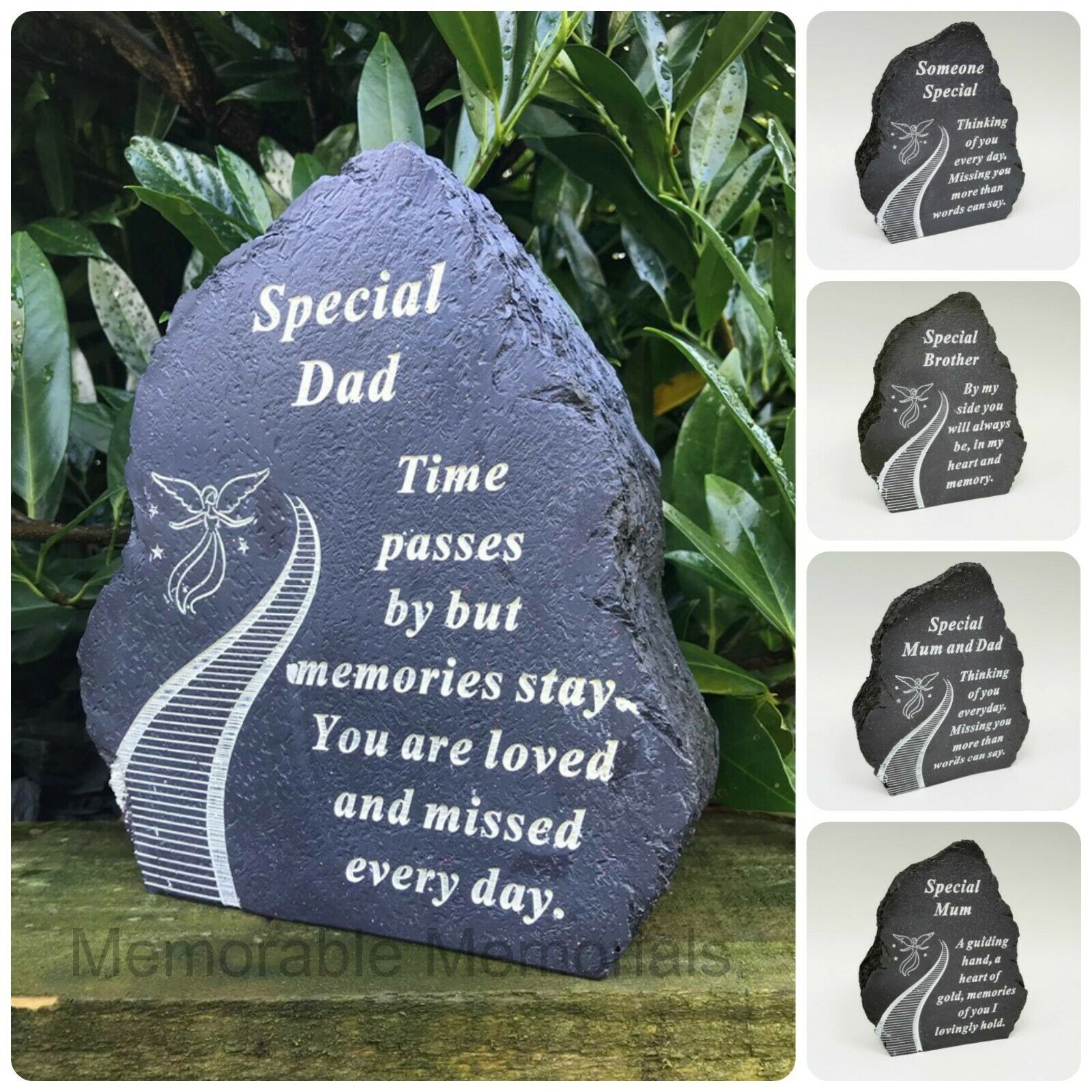 • The memorial tribute is made from a tough durable frost resistant resin to resemble a rock like tribute.