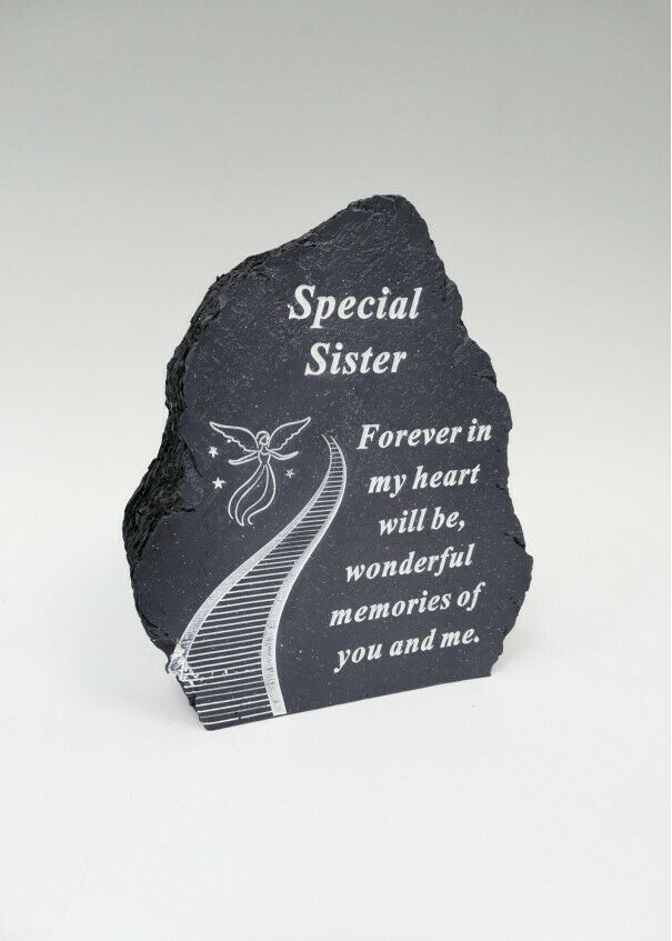 Black and White Stairway To Heaven Rock Memorial Angel Graveside Plaque Tribute