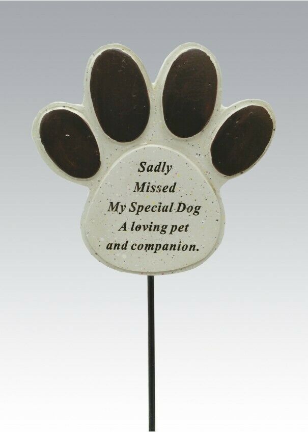 - Sentimental dog paw memory stick with the wording "Sadly Missed My Special Dog A loving pet and companion."