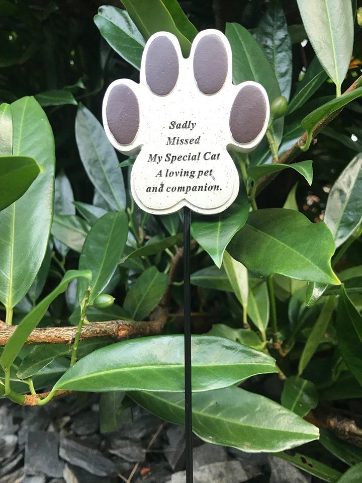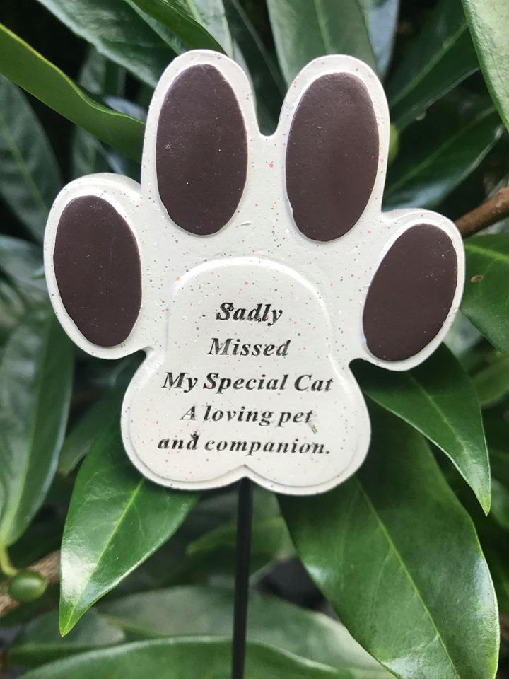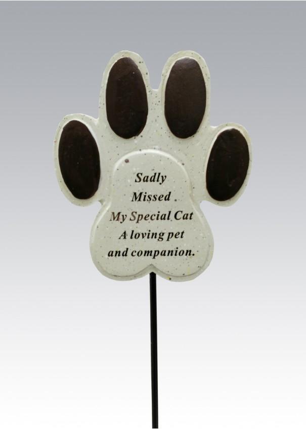 - Sentimental cat paw memory stick with the wording "Sadly Missed My Special Cat A loving pet and companion."