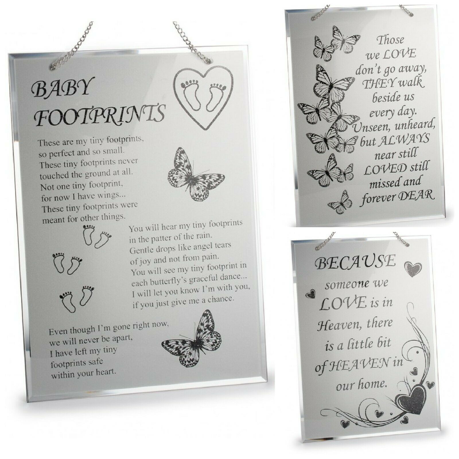 28cm Glass Memorial Plaque Memory Hanging Baby Loss Miscarriage Heaven Butterfly