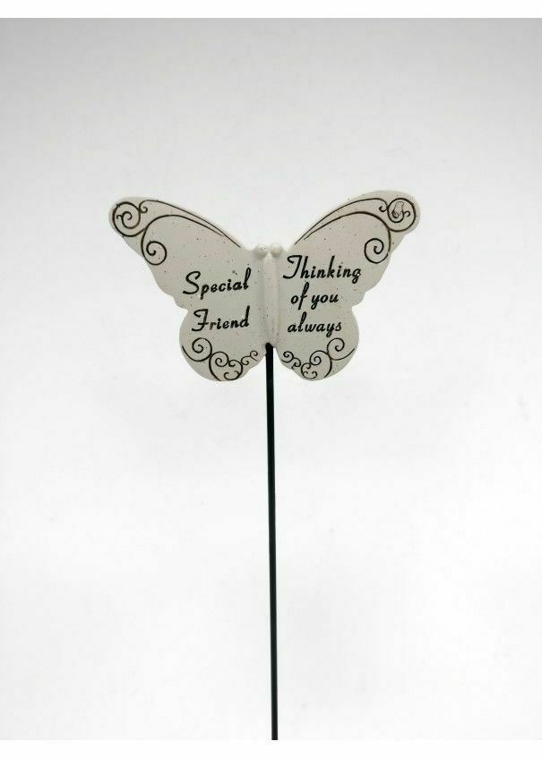 - The butterfly is mounted onto a steel rod which is easily pushed into the ground.