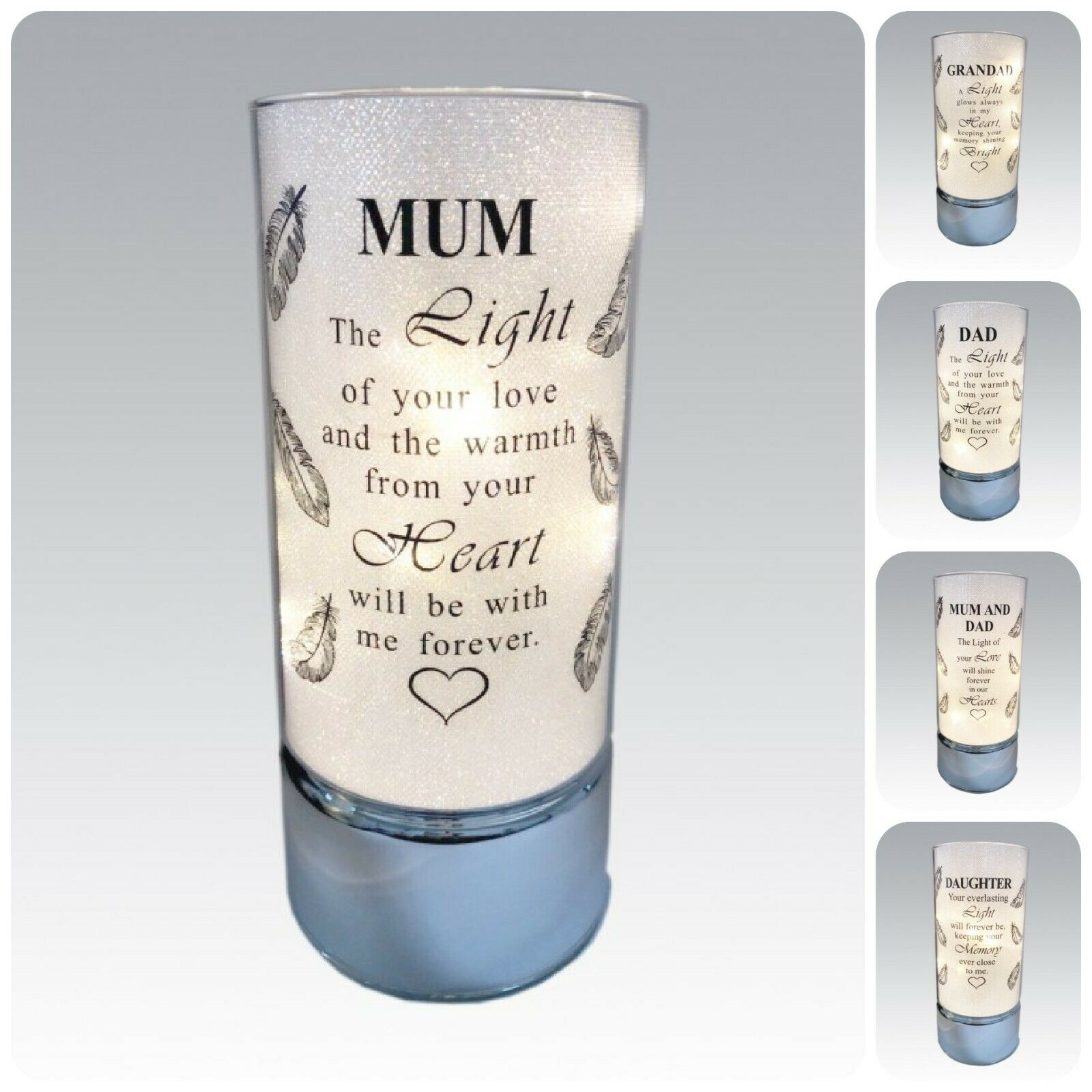 Memorial Light Up Tube - Thoughts Of You Feather Heart Verse Memory Remembrance